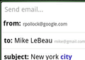 e.g. “send email to Mike LeBeau How’s life in New York treating you? The weather’s beautiful here!”
